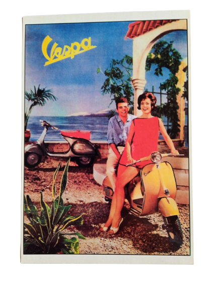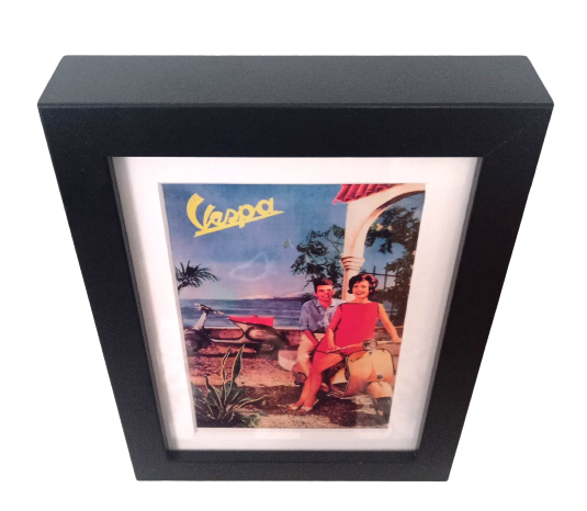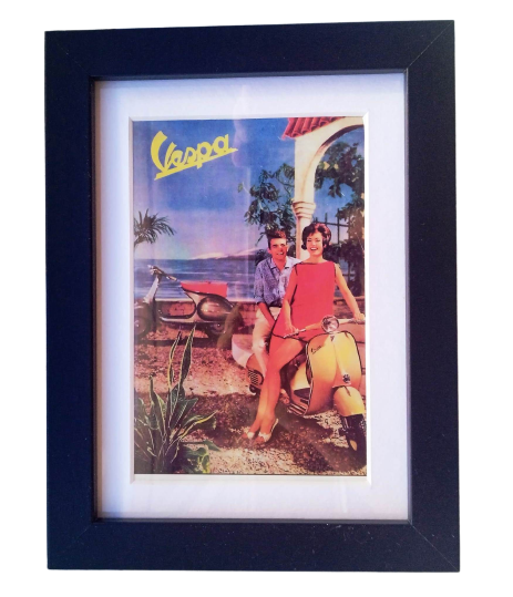 Postal Vespa ( no original ) en marco; el marco se puede usar tambien de apojo.