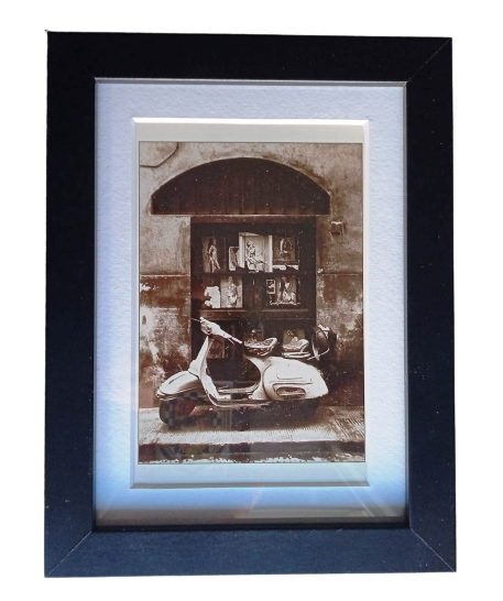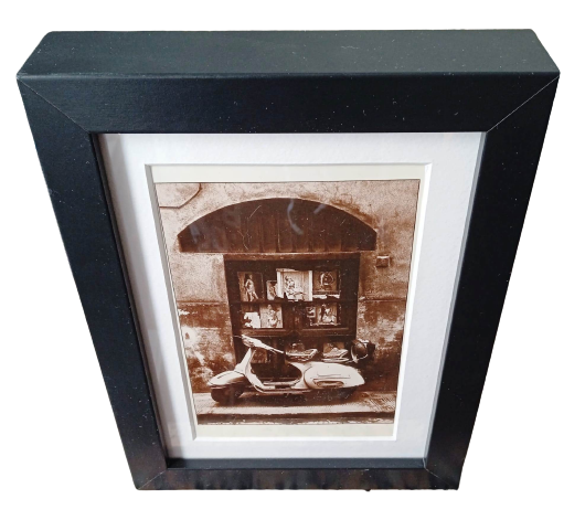 Postal Vespa ( no original ) en marco; el marco se puede usar tambien de apojo.